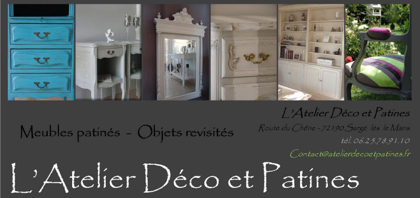Forme juridique de l’ Atelier Déco et Patines : entreprise individuelle – siège social de l’entreprise : route du chêne – 72190 Sargé Lès Le Mans. Société inscrite au répertoire des entreprises et des établissements sous le n° 753 949 064 00012 .